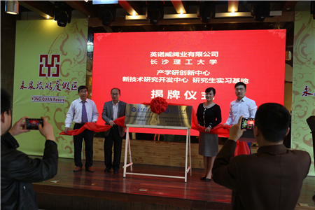 2018年4月11日上午,在銅陵永泉農(nóng)莊舉行,安徽銅都流體科技股份有限公司、英諾威閥業(yè)有限公司與長(zhǎng)沙理工大學(xué)"產(chǎn)學(xué)研創(chuàng)新中心"、"新技術(shù)研究開發(fā)中心"、"研究生實(shí)習(xí)基地"揭牌儀式。