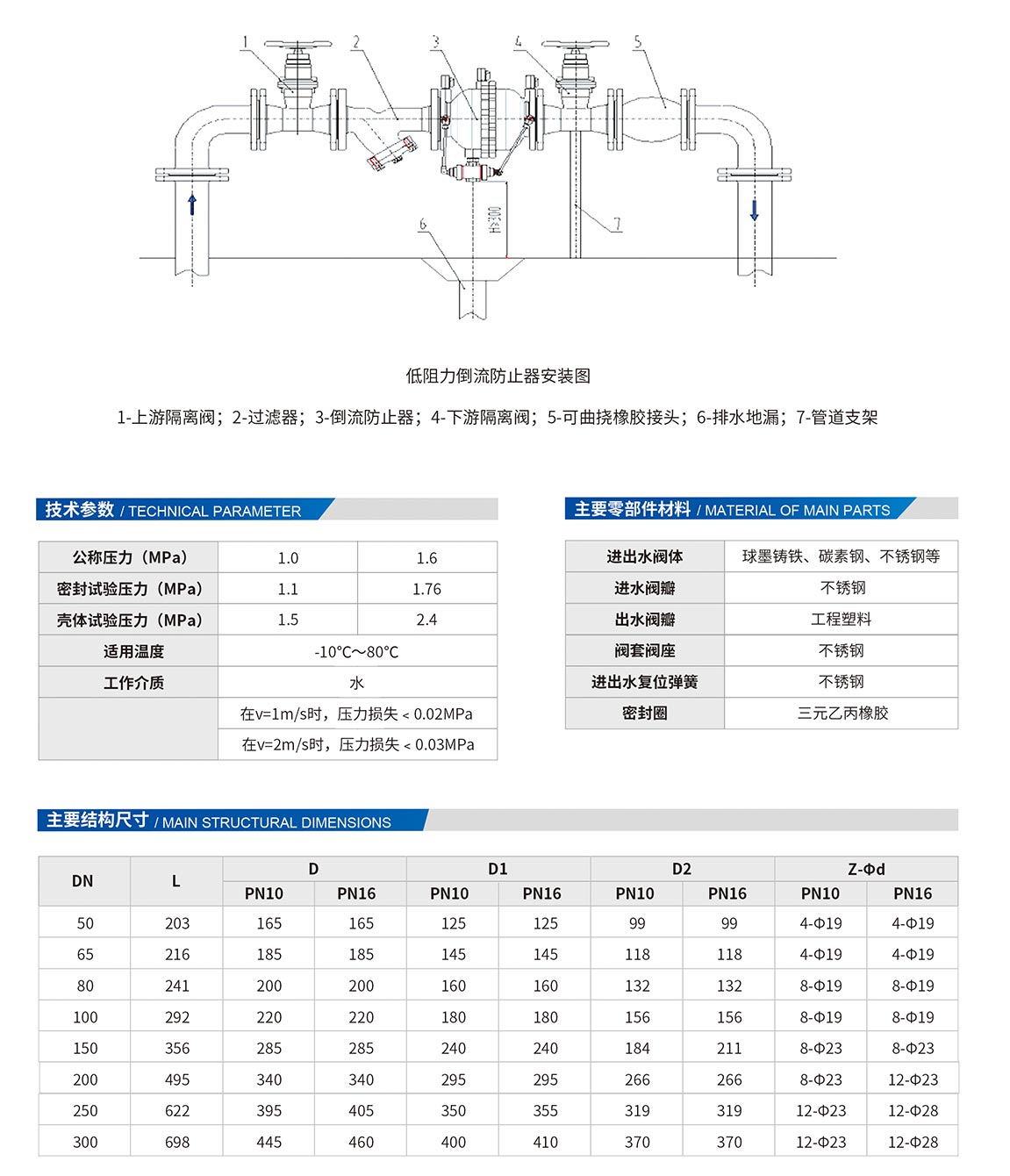 倒流防止器是由兩個相互獨立的止回閥和中間減壓腔內(nèi)一個獨立的水力差動式泄水閥構(gòu)成,三個內(nèi)部閥門除共用閥體外,無任何機械上的聯(lián)系,可靠性較高, 是一種具有限定管道中的壓力水只能單向流動的新型水力控制組合裝置,具有防止倒流污染和虹吸倒流污染的功能,此倒流防止器為市政管網(wǎng)的供水安全提供了合理的解決方案,倒流防止器可廣泛應(yīng)用于城鎮(zhèn)自來水管網(wǎng)、各種水系統(tǒng)及具有回流污染的場所。例如用于高層建筑的供水系統(tǒng)、生活飲用水與中水系統(tǒng)、消防供水系統(tǒng)、空調(diào)制水系統(tǒng)、噴灌灑水系統(tǒng)、工業(yè)取用水系統(tǒng)、醫(yī)療供水系統(tǒng)等,也可用于無負壓設(shè)備的配套安裝,防止不潔凈的水回流到主水管的現(xiàn)象發(fā)生,保證生活飲用水的衛(wèi)生與安全。