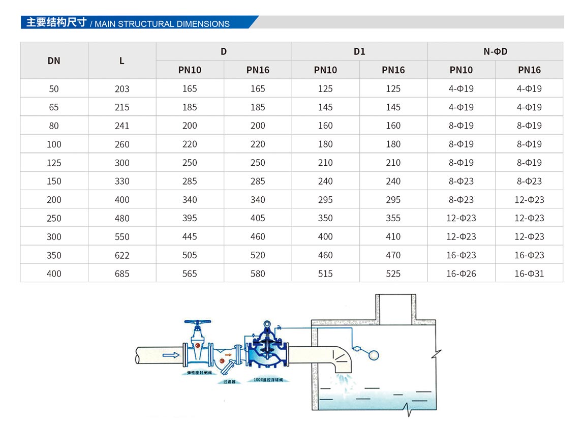 該閥門(mén)能有效地控制水塔或水箱液面,適時(shí)切斷或打開(kāi)閥芯輸入水充或阻止水流外泄。液位控制準(zhǔn),水位不受壓力波動(dòng)干擾,開(kāi)團(tuán)緊密不漏水,浮球靈活,維護(hù)保養(yǎng)簡(jiǎn)單(控制球閥可與主閥分離安裝),適用于工礦,企業(yè),高層建筑中的水箱,水池,水塔的自動(dòng)供水系統(tǒng)。